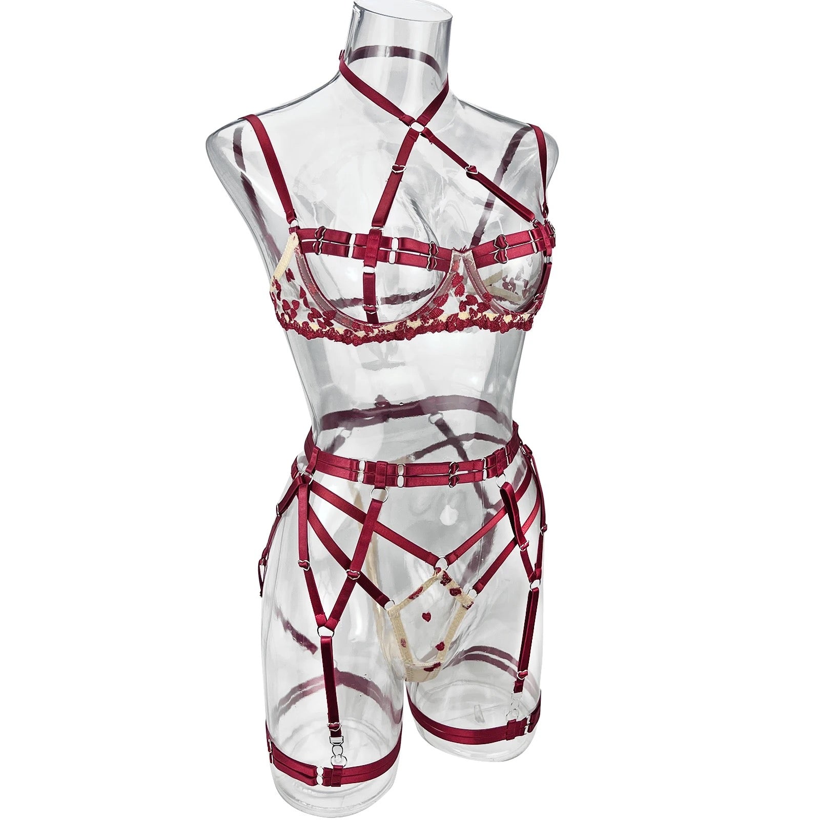 - Set Includes: Bra, Panties & Garter