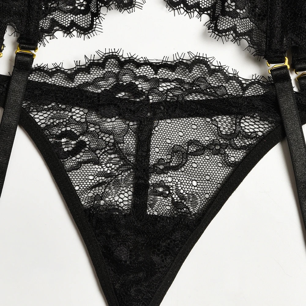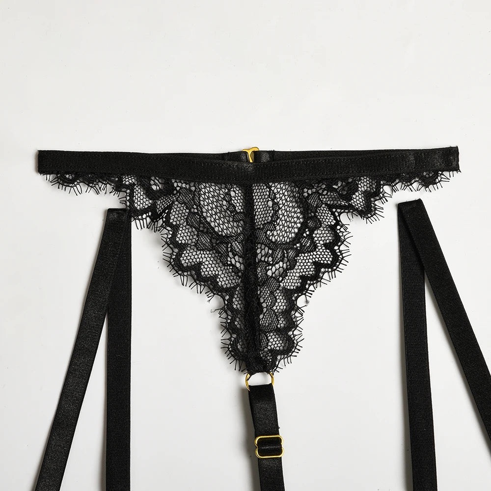 - The Set Includes: Bra, Panties & Garter