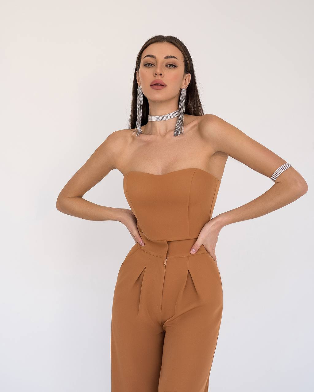 Костюм трійка (піджак, штани труби, корсетний топ)